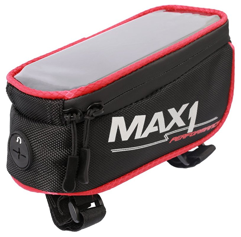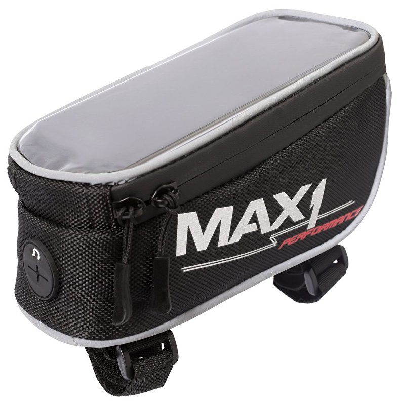 Kompaktní brašna MAX1 na rámovou trubku s kapsou uzpůsobenou pro mobilní telefon.